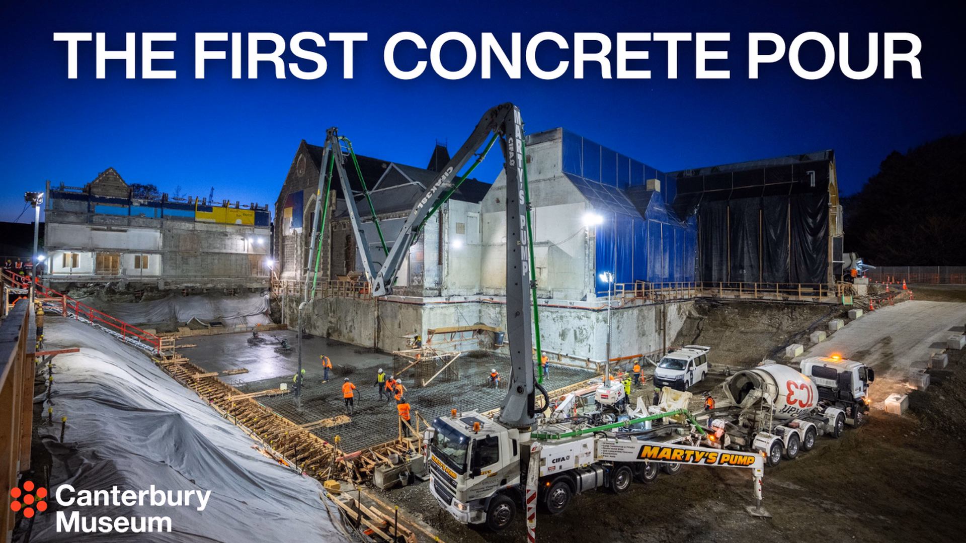 The first of several large concrete pours has been completed, marking the start of the new-build element of the redevelopment. It will take until mid-2026 to finish the concrete slab for the outer basement floor.